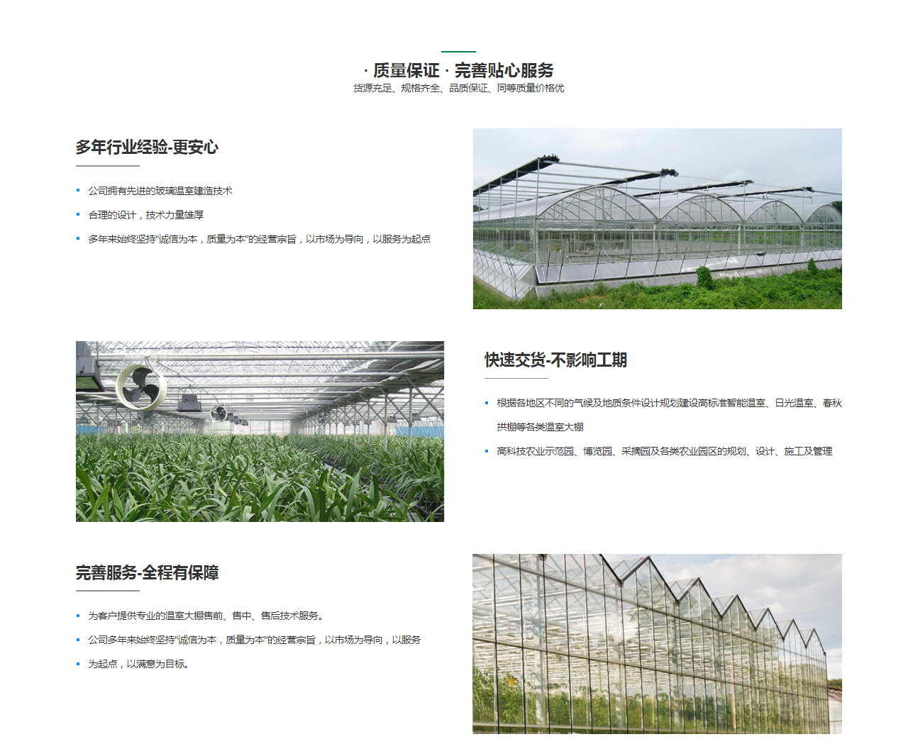 無錫永睿鴻溫室工程有限公司自創辦以來,已在多個城市地區承建了許多的農業示范園區、花卉苗木種植園、家禽水產養殖區、生態餐廳和旅游觀光園等。并以“質量過硬、價格合理、服務周到”贏得了廣大用戶的信賴?! 」局鳡I產品:玻璃溫室、溫室工程、連棟大棚、蔬菜大棚、溫室大棚、花卉大棚、養殖大棚、大棚鋼管、外遮陽大棚、外遮陽連棟大棚等?! 」井a品廣泛用于農業生產、水產養殖、食用菌培養、花卉生產、林業種苗、畜牧等行業,并配有各種規格可供選擇,還可根據客戶要求提供特制結構?! ∥夜緭碛胸S富的施工經驗和完善的售后服務,秉承著團隊精神的和始終堅持誠信做人、認真做事、科學管理,不斷開拓創新,超越自我,提升綜合素質的理念,同時公司擁有技術精湛,經驗豐富的技術團隊,將竭誠為各界朋友提供農業設施的設計及相關服務?! 」疽回瀳猿帧捌焚|保證、用戶至上,誠信服務”的宗旨,憑借著高質量的產品,良好的信譽,完善的服務,產品暢銷近三十多個省、市、自治區。歡迎來電咨詢! Since its establishment, Wuxi yongruihong Greenhouse Engineering Co., Ltd. has undertaken to build many agricultural demonstration...
